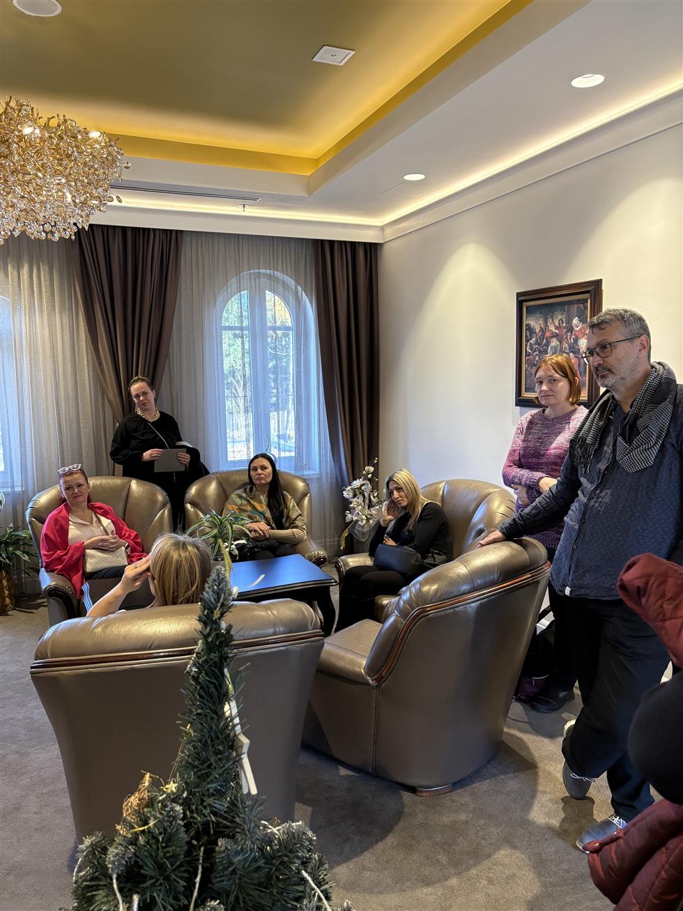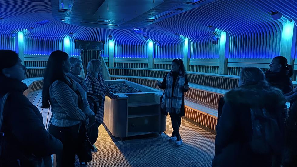 Následovala prohlídka wellness Infinity Sen, který představila manažerka pro obchod a firemní spolupráci Lucie Císařová s kolegyní. Sauny Infinity Sen, letos nově otevřený vyhřívaný bazén s kompletním zázemím a velký dómem pro saunové ceremoniály (až 130 osob), připravuje se bazénový bar.